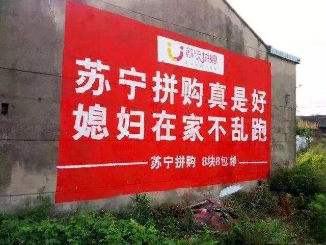 京东、淘宝拦不住拼多多的下沉,已经加入了拼购战局。向来把京东视作“死对头”的苏宁,也追随着敌人的步伐爬上了广袤的农村墙壁,为农民朋友科普知识。