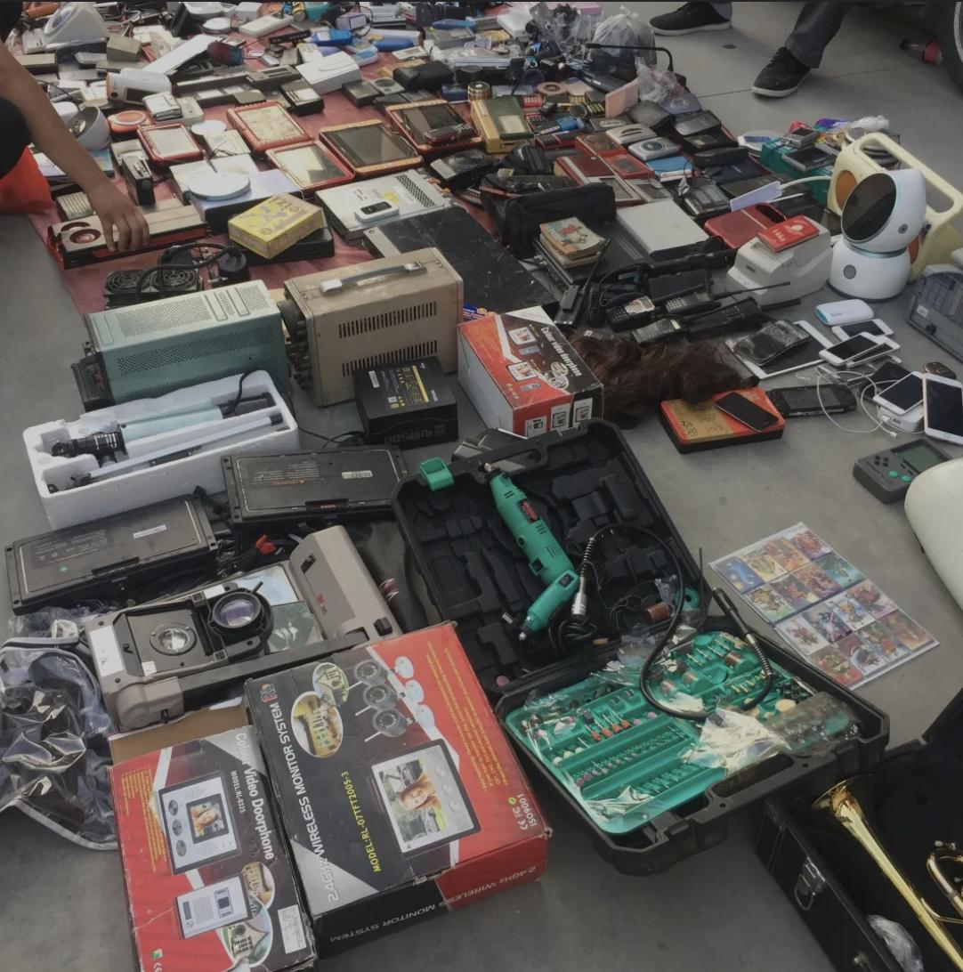 疫情前,王海出摊的次数不比其余摊主频繁,他平均一个月只出两次摊,其余时候都在收货。他的收货周期更长,因为除了去废品站、地摊淘货,他还要验货、清洗并简单修理电子产品,这些都要花费大把时间。