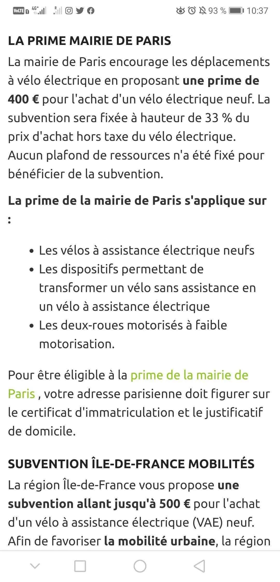 这几天,Vickie就在考虑是否要跟风入手一辆电动自行车,“现在政府推出了补贴政策,买自行车国家补贴33%费用,最高可以减免400€。也就是说,如果根据补贴上限买一辆1200€的电动自行车,只需要给800€就够了。”