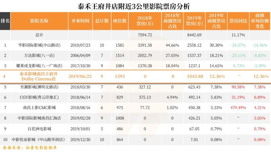 拓普智库在对泰禾集团的旗舰影城(南昌王府井Dolby Cinema店)2019年的进行数据分析后发现,该店开业半年便分流走了所在商圈12.36%的市场份额,其中该商圈里两家开业时间最久的老店(包括一家万达影城),受影响最为严重。