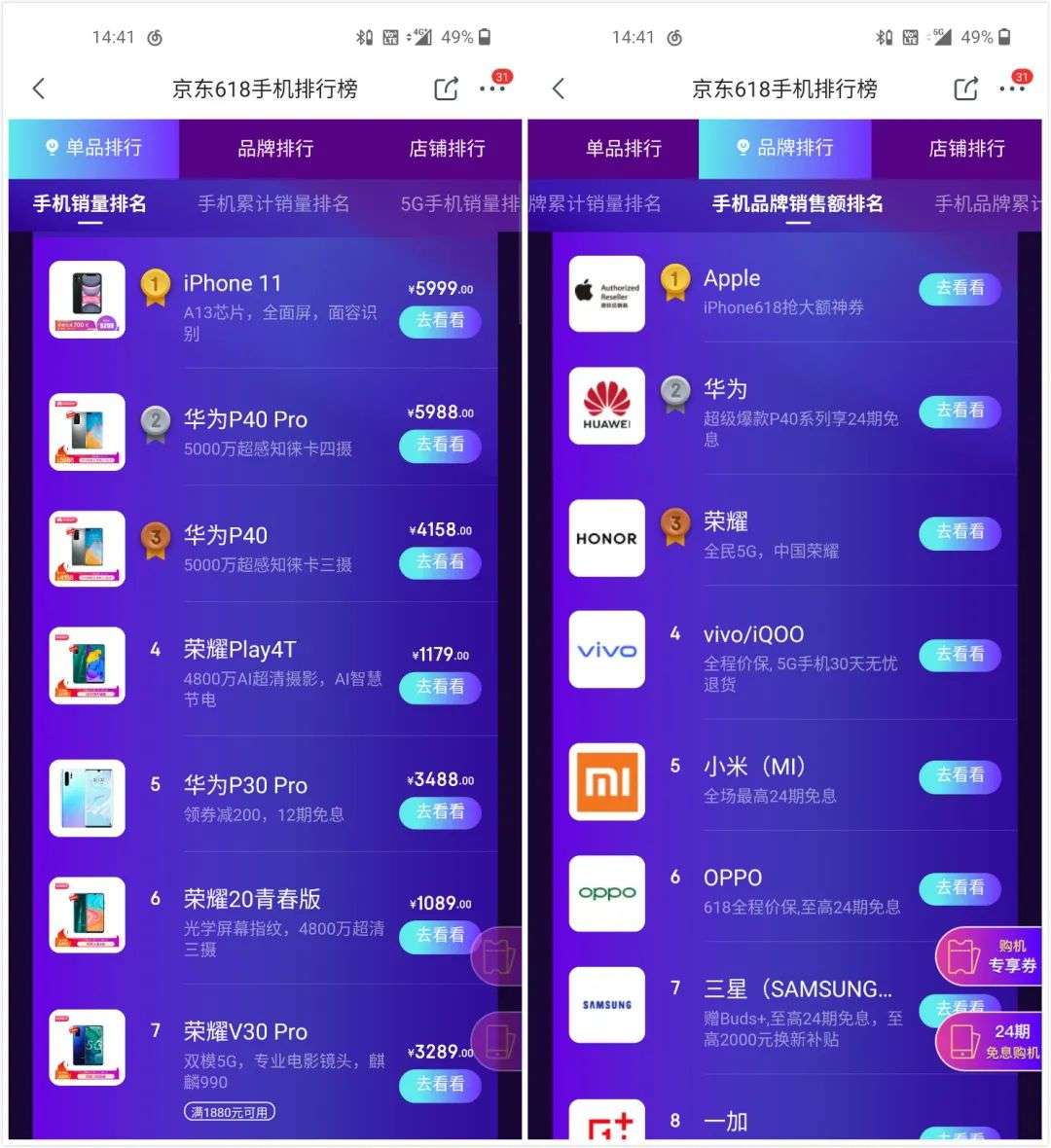 京东618的销售数据也可以说明一些问题:手机销售榜上不见三星踪影,品牌销量排到了飞利浦、天语之后,只有在销售额排名上能位列第七。就算这跟S20系列手机7000元以上的官方定价脱不了关系,但也不容乐观,系列中销量最多的S20+评价数仅1万出头,不及往日辉煌。