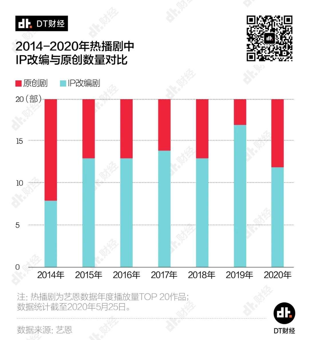 从2014年到2020年5月的6年半里,140部热播剧中共有90部改编自IP作品,包括网络小说、游戏改编、韩剧翻拍等,其中又以网络小说改编为主。