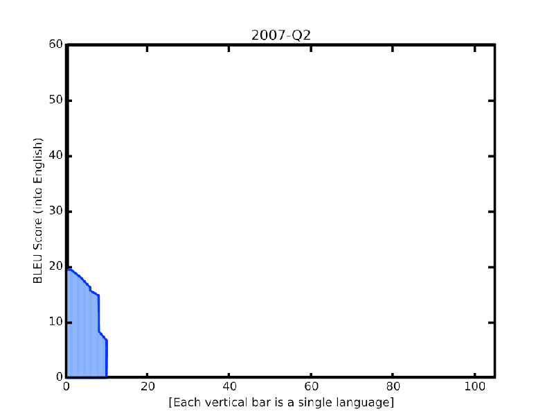 自2006年成立以来,Google翻译模型的BLEU得分情况
