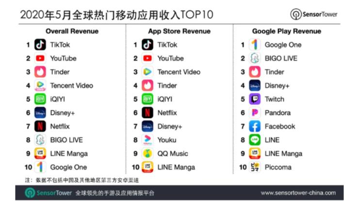 Sensor Tower:5月抖音及海外版TikTok收入9570万美元,同比增逾10倍