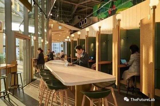 而让星巴克最头疼的问题是,COVID-19导致光顾门店的顾客越来越少,大部分顾客选择了线上下单或外带,这使得宽敞舒适的咖啡体验区返到变成了一种负担。星巴克的管理层也越来越意识到,单凭传统意义上的“咖啡社交空间”已无法满足当今顾客复杂多元需求,需要对“第三空间”进行再次审视,而这成为了星巴克开始探索共享办公(Co-working)模式的开端。作为第一家具办公属性的咖啡馆则开在了东京都港区的Takanawa Gateway Station,其背后运营商就是JP East。