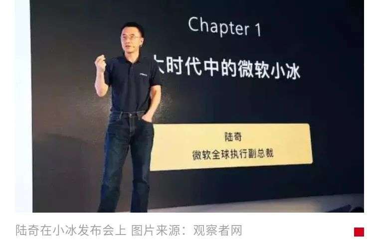 微软小冰算是由时任微软全球执行副总裁陆奇拍板的项目,前四代的小冰发布会都由陆奇负责。