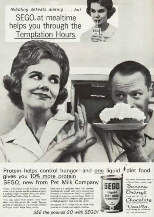 当年,Metrecal 的竞争品牌 Sego 就主张在同等卡路里前提下填充更多蛋白质,以此延长饱腹时间。
