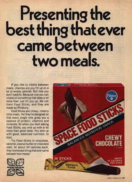 利用 1960 年代美国人对探索外层空间的迷恋,太空食物棒一度取得了巨大的商业成功。