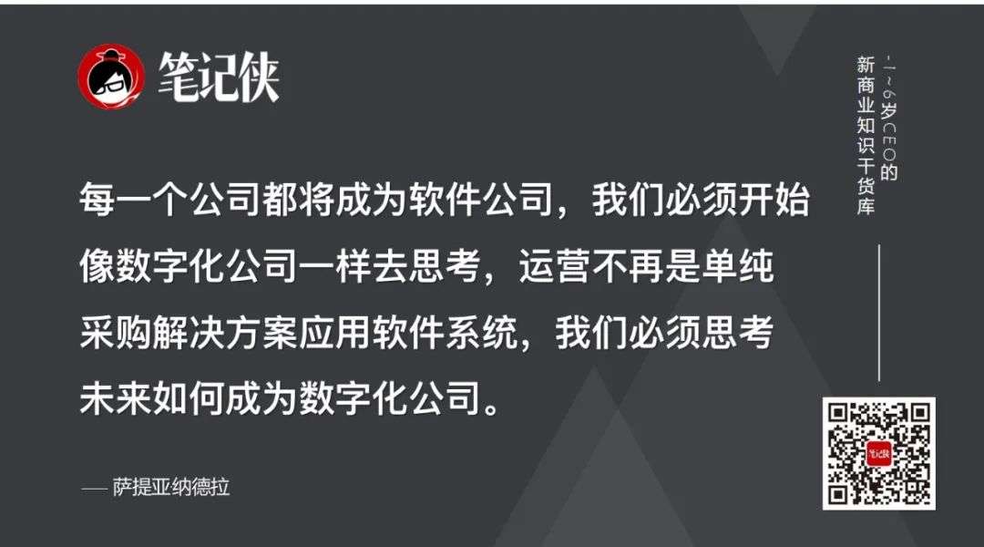 萨提亚在《刷新》一书中提到,每一个公司都将成为软件公司,我们必须开始像数字化公司一样去思考,运营不再是单纯采购解决方案应用软件系统,我们必须思考未来如何成为数字化公司。