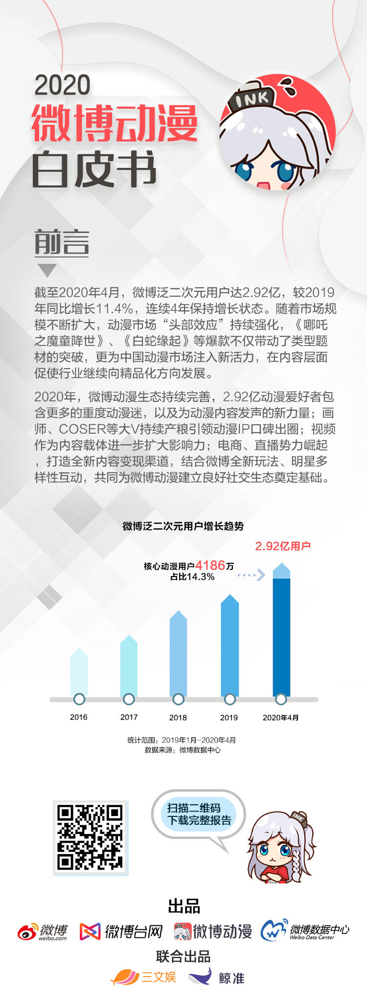 今日,由鲸准与微博动漫联合发布的《2020微博动漫白皮书》正式上线。