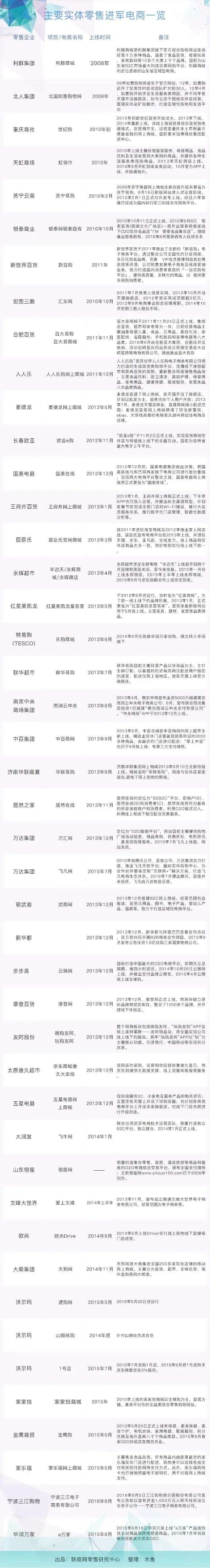 实际上,也就是从2014年开始,实体零售企业大举进军线上,据联商网零售研究中心数据统计,在2014年主要有13家大中型实体零售商上线电商平台,构建O2O、全渠道,整合线上线下资源。包括大商的天狗网、万达集团的万达电商、大润发的飞牛网、步步高的云猴网等。