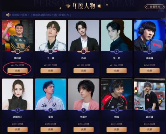 2019 年,这样的人气以更加真实的形式体现出来,在年底的“微博人物”年度评选中,Uzi 的票数超过当年最具话题性的流量明星肖战和王一博,成为票王。