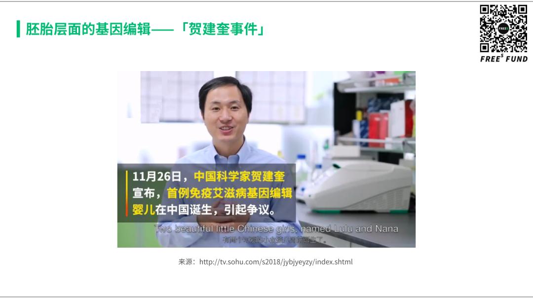 既然有这样大胆的想法,就难免会出现更疯狂的事情。这就是 2018 年底闹得沸沸扬扬的「贺建奎事件」,即直接在胚胎层面做了编辑,把 CCR5 这个基因敲掉,希望从此这个胎儿再没有被 HIV 感染的风险。当然,这个事件在全世界范围内引发了巨大的伦理挑战。