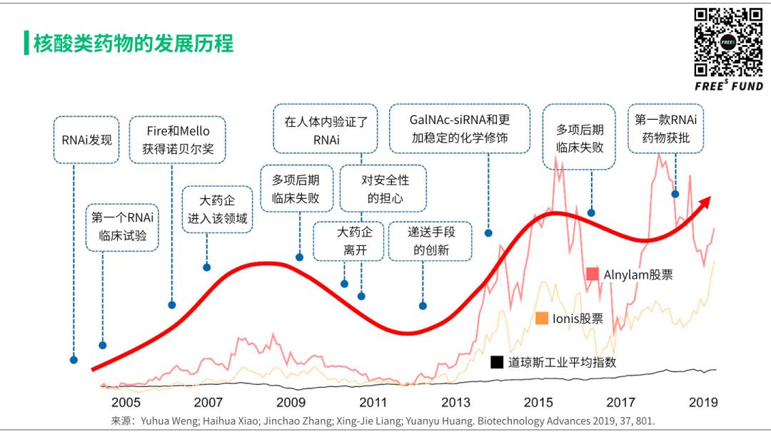 从核酸类药物的发展史来看,两家代表性公司都在这个领域经历了多次起起伏伏,可以说经历了至少两轮 Hype Cycle。