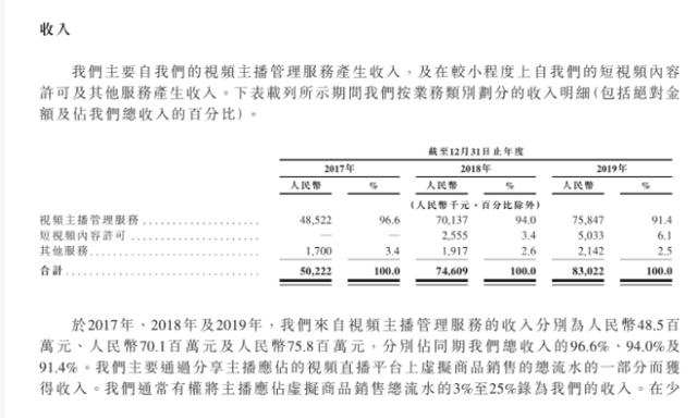 从招股书上来看,公司近三年市场表现较好。2017至2019年,公司营收分别为5020万元、7460万元及8300万元,同期纯利分别为1810万元、2560万元及3250万元。另外,月均开播主播由2017年的3600名以上增加至2019年的4000名以上;月均活跃主播由2017年的约980名增长至2019年的约1900名。