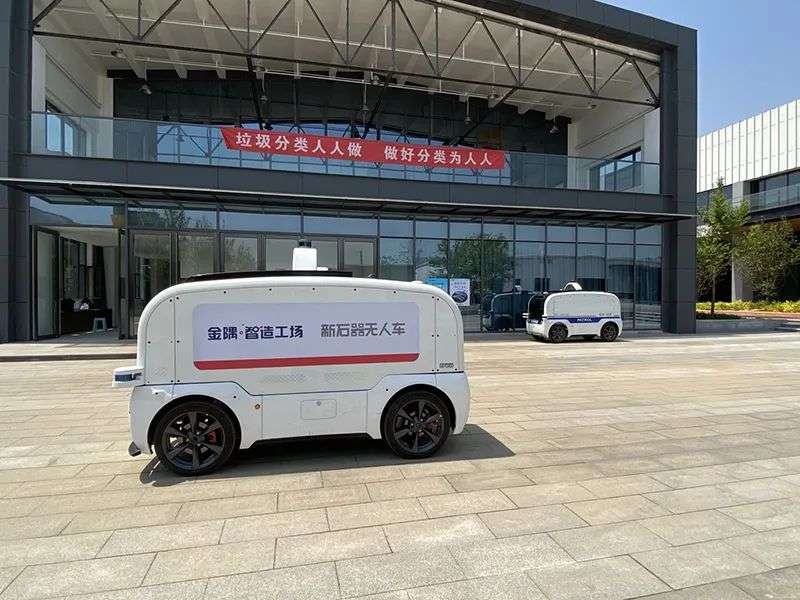 据新石器的工作人员介绍,截至到探访时,金隅智造工场内共有两辆新石器无人车,两辆车部署时间相同,其中一辆已经在提供送餐服务了,另一辆还处于测试状态。从现场情况看,这辆还在调试阶段的无人车应该是属于安防型,而非快递型。