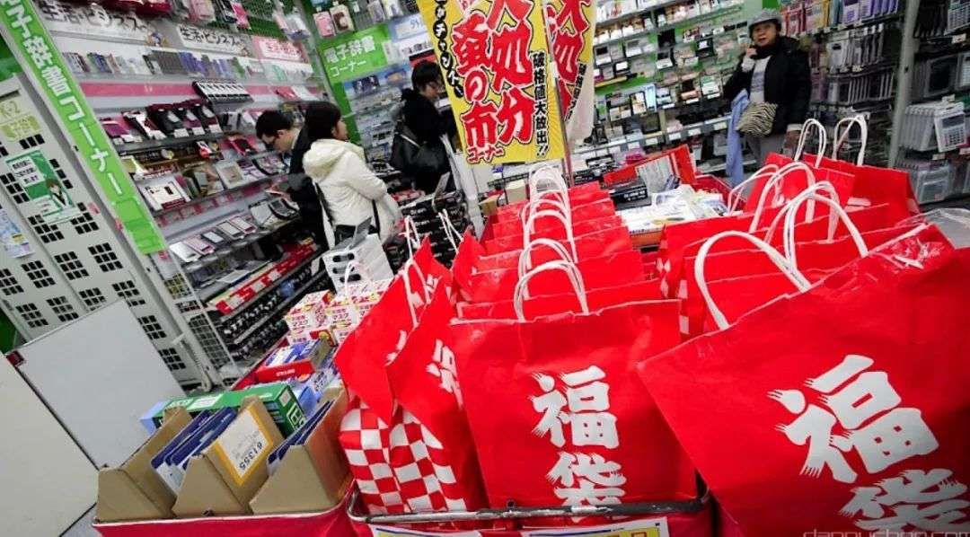 日本的商场也深谙此道,创造了福袋的概念。把不同的商品塞入福袋,密封好,按类型分开,由顾客抱着期待选购。
