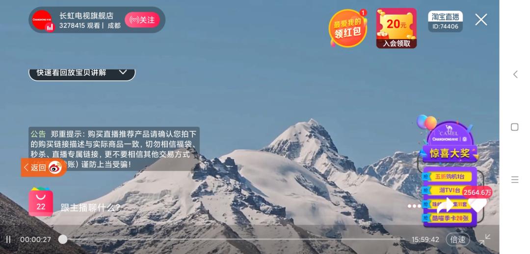 这张直播吸引了320多万人围观。直播画面中,除了带货主播,更有巍峨壮观的珠峰雪景,堪称最奇特的直播间。
