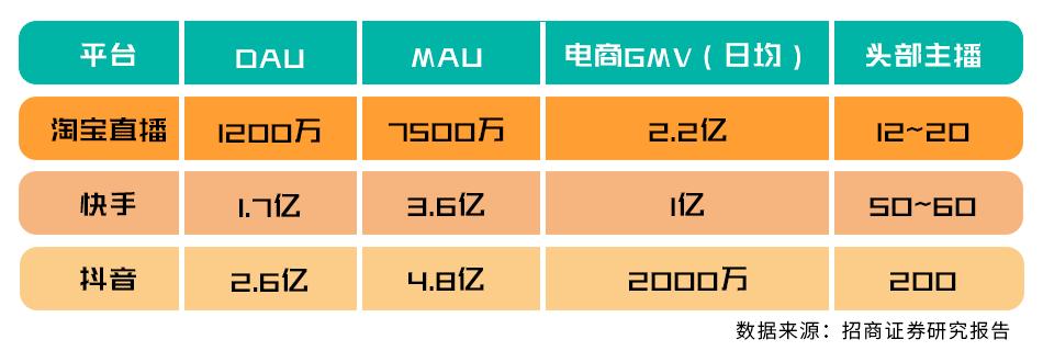从数据方面来看,淘宝直播在电商GMV方面拔得头筹,抖音的日活与月活占据优势。