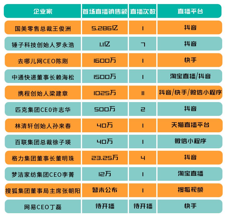 CEO们纷纷开直播 谁是最会带货的老板?