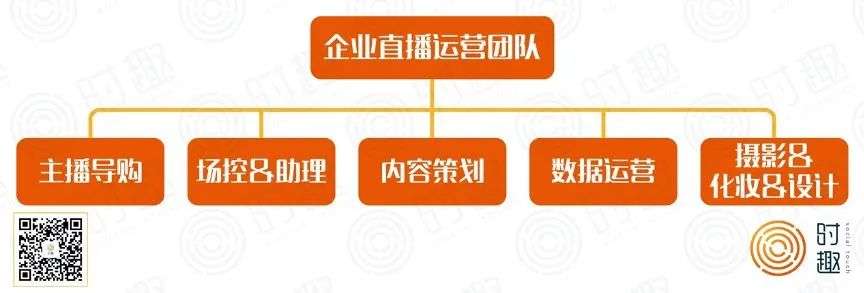 “店播”自然需要品牌商家搭建自身的直播团队,一个完整的直播团队通常包含以下五类人,在小型直播团队中可能会有一人身兼多职,品牌也可以把部分角色委托给专业的营销服务公司。
