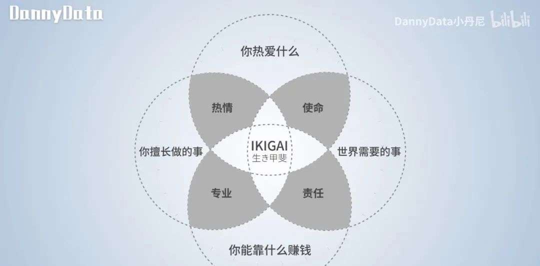 最美满的模式,是找到自己的IKIGAI, 一个让四圆重叠的事情。已经找到自己钟爱之事,擅长之能,必履之责,营生之业,还有女朋友,以上这些你都有了吗?全都有的同学请你保持安静,不要用弹幕酸大家了。