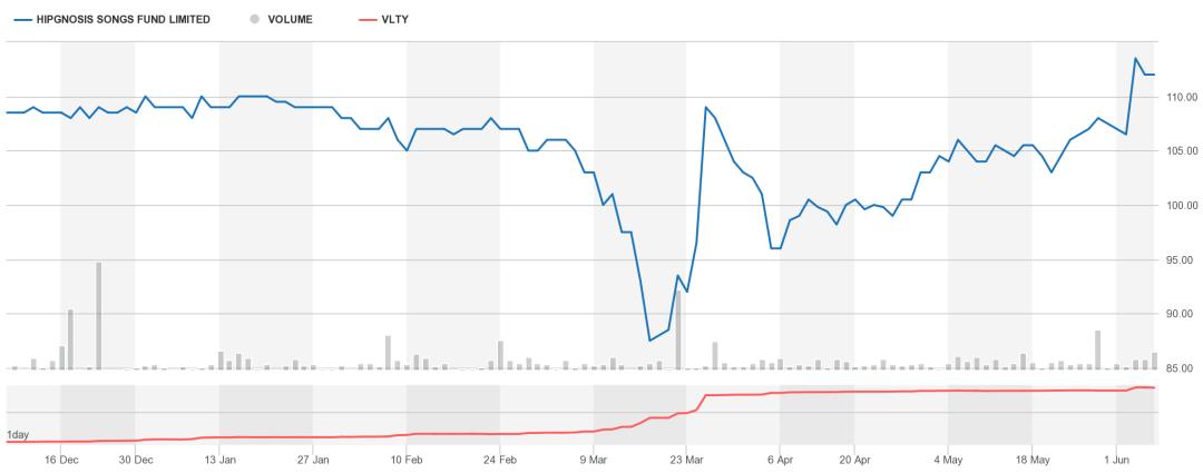 2018年,Hipgnosis在伦敦证券交易所上市,第一年股价就上涨了近10%,现已成为全球音乐行业最受关注的公司之一。在音乐行业绝大部分公司都因疫情受到重大打击的同时,该公司成为了大赢家。