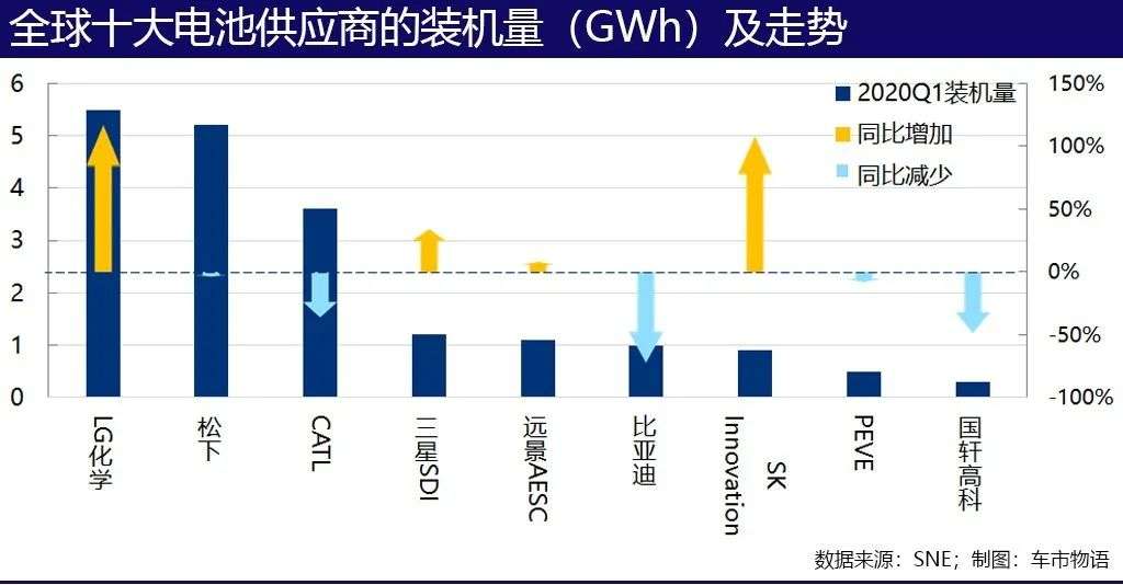 今年第一季度,全球动力电池装机量同比下降了14.2%,中国电池商的装机量下降了54.3%,LG化学和松下联手将宁德时代赶下了第一的宝座。变天了!