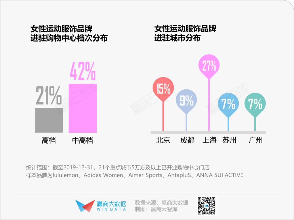 女性运动消费市场大,而专属于女性的运动服饰品牌少,稀缺性强,因此这类品牌更容易受到档次较高的购物中心青睐。而在消费观念更为先进的上海、北京也成了这些品牌的进驻首选。