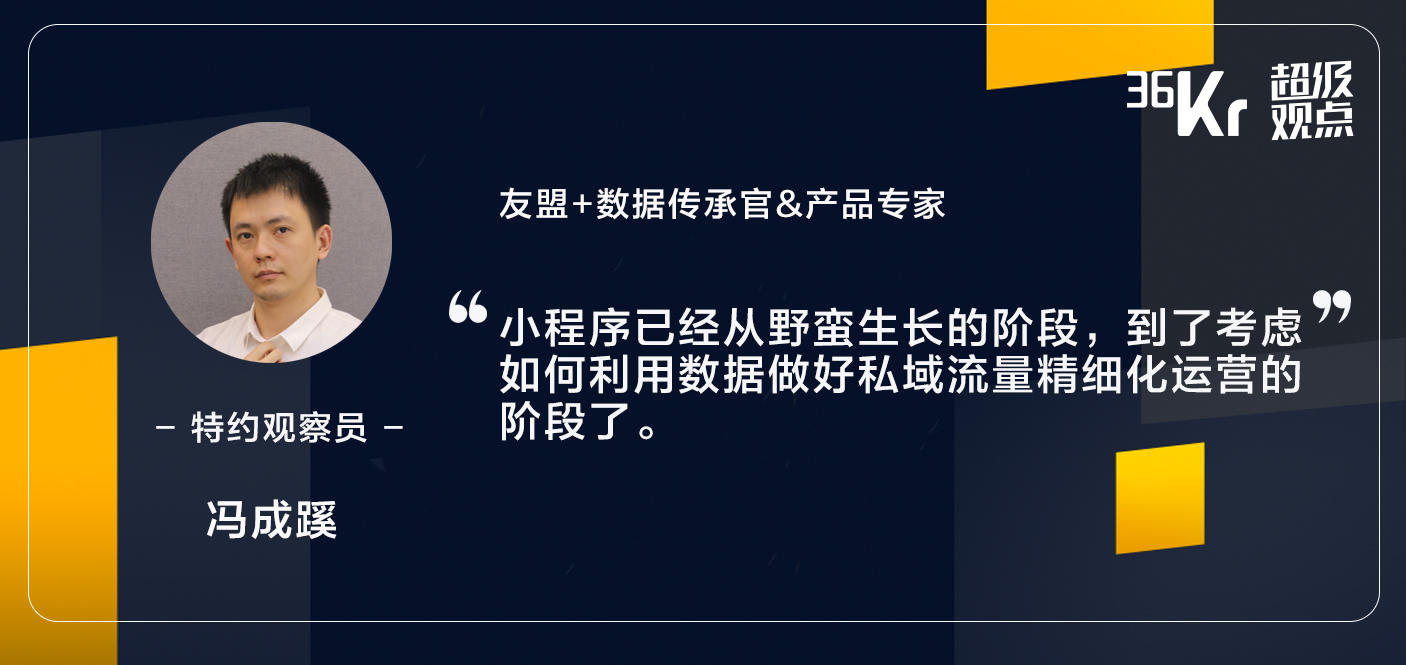 从发展速度来看,小程序已经从跑马圈地、野蛮生长的阶段,到了需要考虑如何利用数据做好私域流量精细化运营的阶段了。
