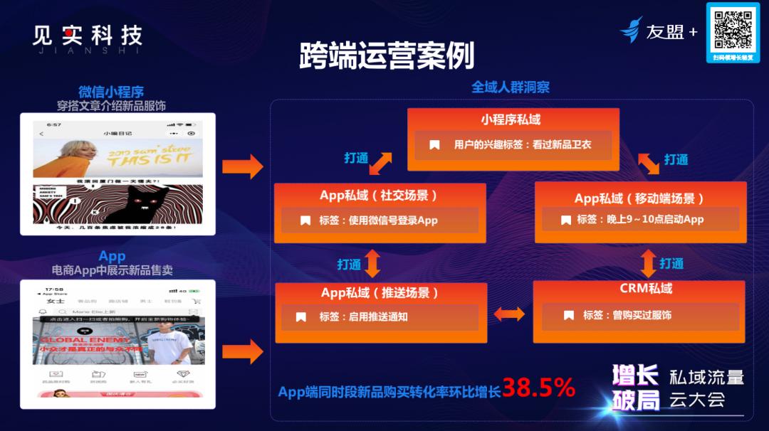 另外,小程序可能无法像传统电商APP一样在小程序中形成完整的电商成交链路,但仍然可以通过数据关联洞察用户行为习惯。例如,小程序通过私域内容种草观察某个用户的兴趣标签,当用户登录APP时观察其活跃时间段,通过数据银行就可以将这两部分的用户标签进行关联,然后结合用户触达工具选择合适的信息、合适的场景去触达用户,这种运营方式可以让单品在同时间段内增加近三成的转化量。