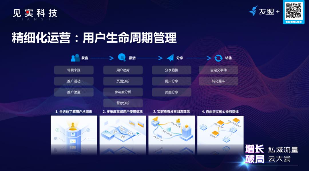 2.多维度掌握用户的使用情况。帮助开发者在裂变过程中找到用户体验路径和关键业务路径,从而做好小程序的精细化运营。