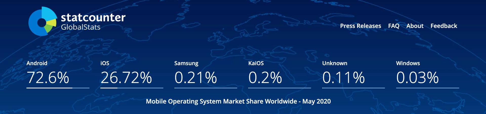 根据Statcounter的数据,KaiOS当前的市场份额位列第四