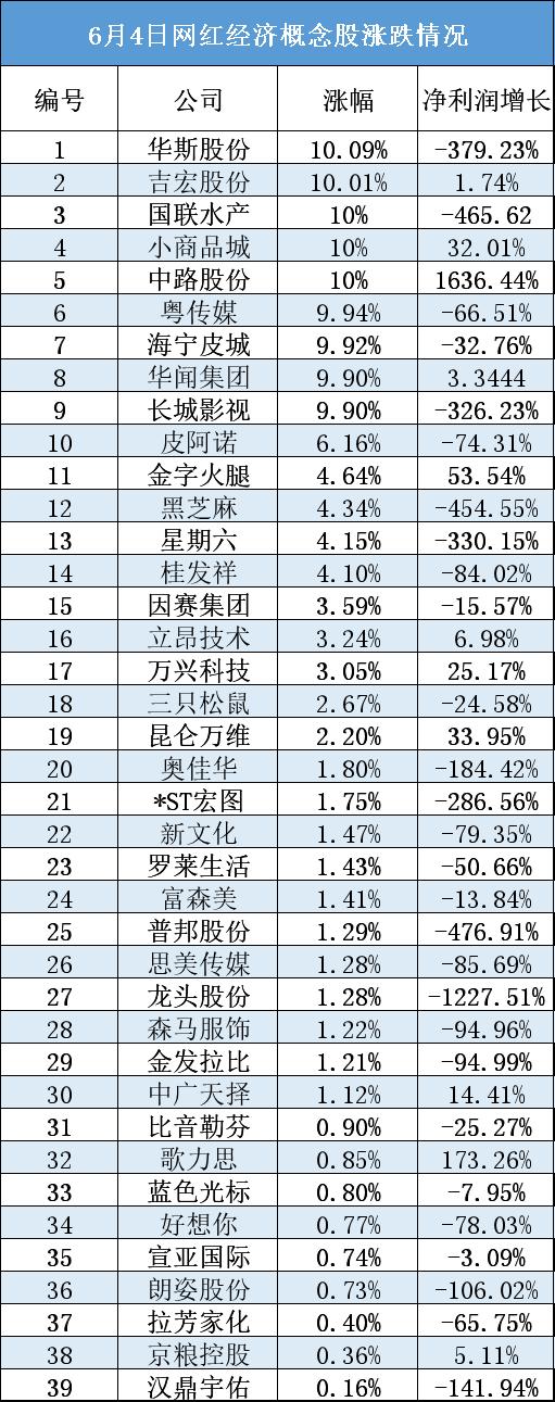 不过这些“蹭上”网红经济且股价大涨的上市公司在业绩上却并不出彩。根据「DoNews」整理,该板块39家股价上涨的公司中,仅有11家在2020年Q1的净利润实现同比增长,其余28家均为下滑状态。