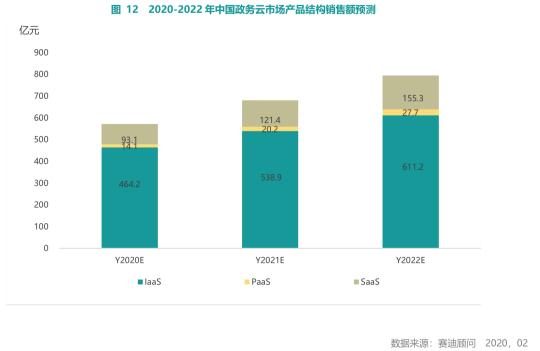伴随“新基建”成为社会中长期规划,特别是疫情期间各地政府已经充分领教了数字政府与智慧城市的必要性,未来三年内我国政务云市场年均复合增长率将接近18%、预计到2020年我国政务云市场规模将将达794.2亿,而主要市场增量将来自于PaaS与SaaS领域,其中IaaS是其他云服务的基础,增速会有所放缓但市场规模会每年以近一百亿增量递增,PaaS市场年复合增长率超40%,而SaaS年复合增长率超30%。