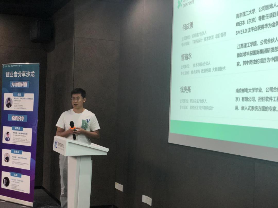 创业故事分享环节,首先由垠坤集团邀约的,来自芯睿中心园区的创业企业南京小白兔软件有限公司创始人兼总经理何庆勇为大家带了他的创业故事。