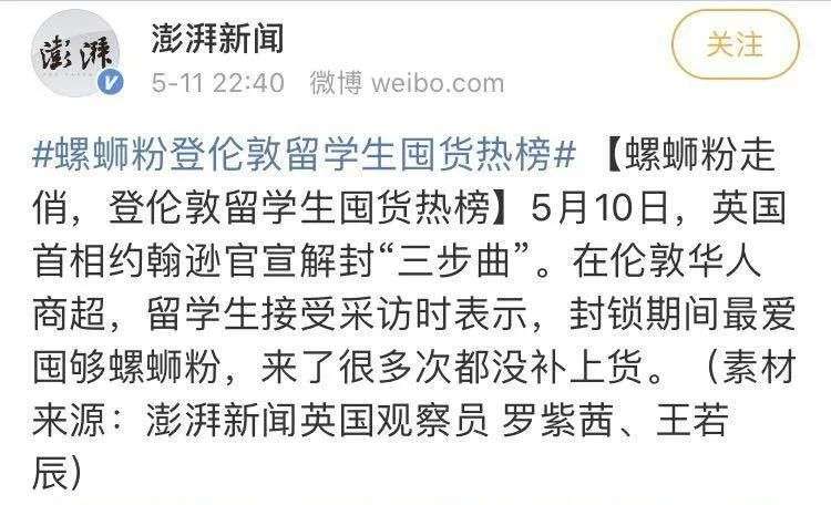 事实上,不仅仅是海外,疫情期间国内也掀起一股抢购螺蛳粉的热潮,还记得3月份有号称6000万人微博上呼喊“螺蛳粉自由”吗?