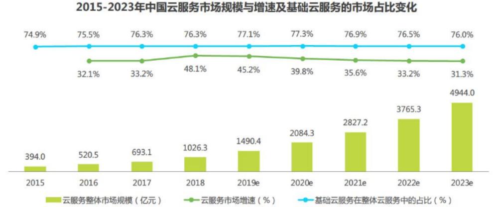 根据艾瑞去年9月份发布的《2019年中国基础云服务行业发展洞察报告》显示,我国如今的云服务市场近年来取得了爆发式的增长,无论是IaaS、PaaS还是SaaS市场,都保持着较高的增长速度,如今更是跻身千亿级别产业市场,且预估未来市场增速保持在30%以上。