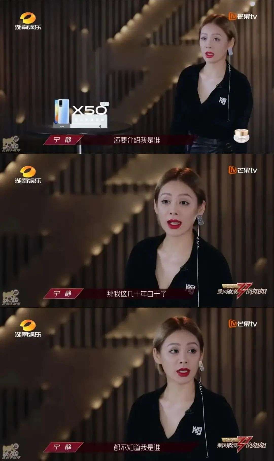 当节目组要求宁静做自我介绍时,宁静直接回应:“还要介绍我是谁,那我这几十年不是白干了吗?”当发起人黄晓明在微博为姐姐们打call时,按照姓氏排序为30位姐姐发了30条应援微博,上演在线卑微。