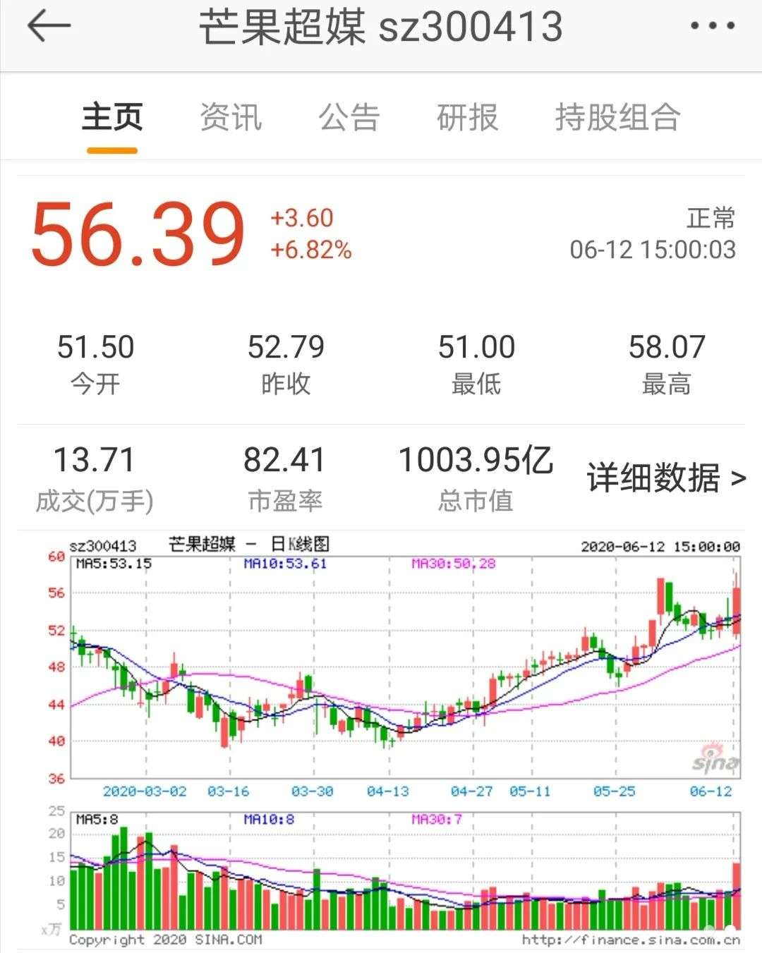 另一方面,在资本收益上,今日节目上线之后,从13:00开始,芒果超媒股票迅速拉升了7个点,带动整个创业板,节目实火。