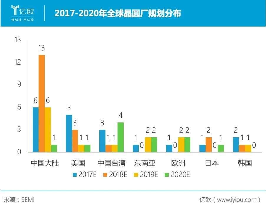 即便面对资金和技术的双重阻力,国内晶圆厂商追赶的步伐却未曾放慢。根据SEMI的统计,2017年到2020年全球将有62座新的晶圆厂投入营运,其中中国大陆有26家,占比超过四成。