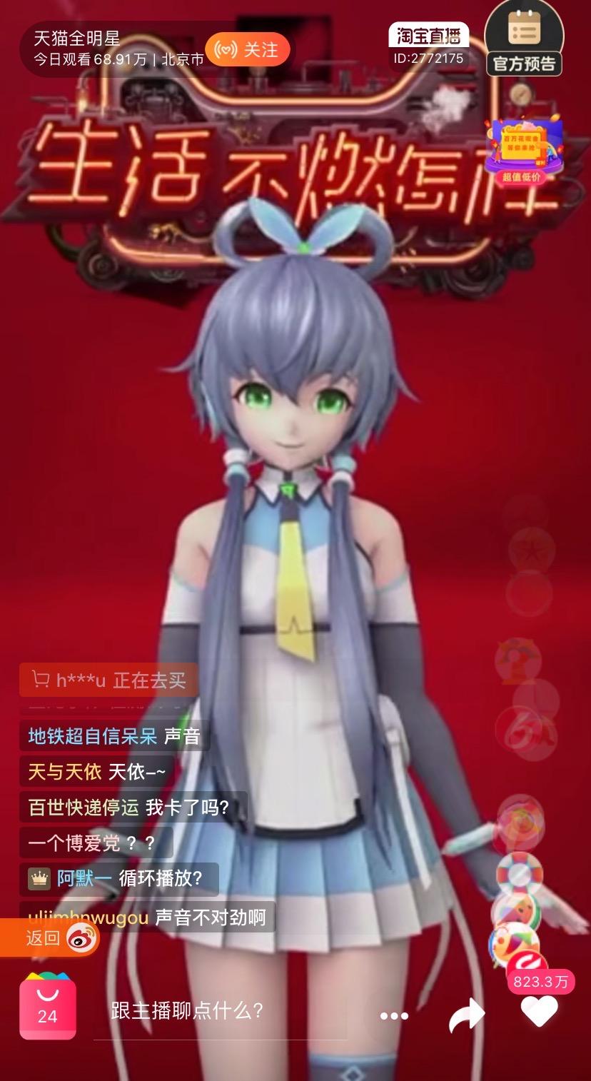 屏幕左下角疯狂滚动“洛天依”等字眼的留言,淘宝直播间的观看量约以万/秒的单位暴涨。