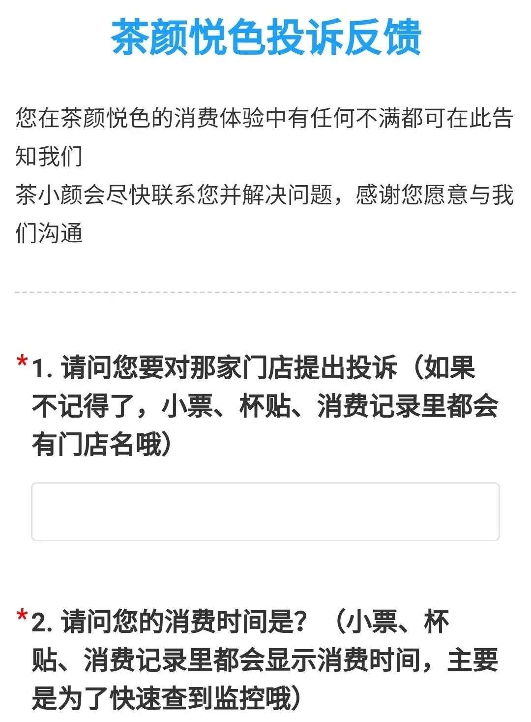 △茶颜悦色投诉反馈调查表