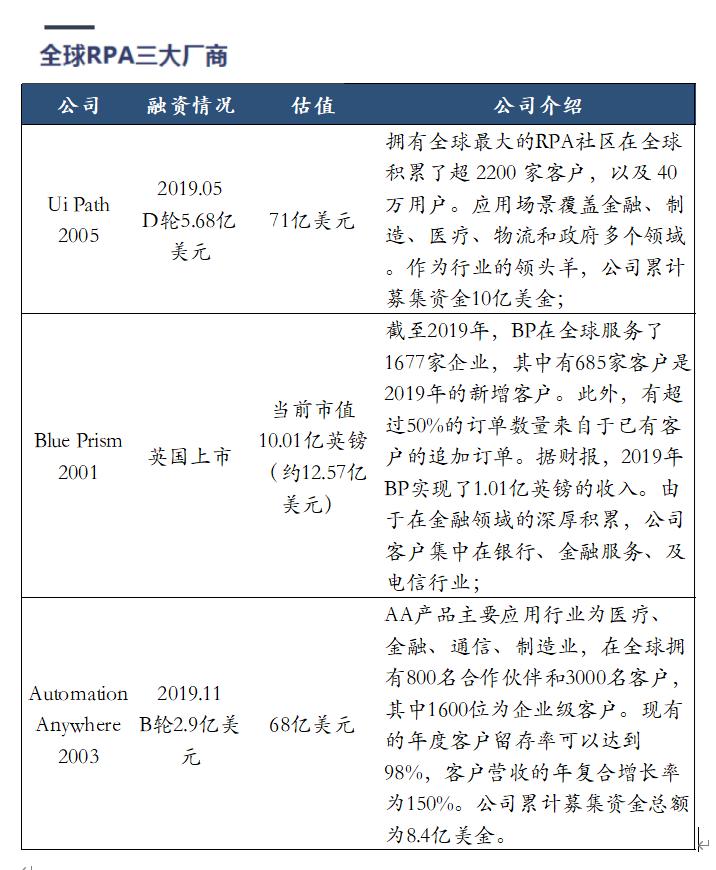 对于中国市场,全球三大RPA公司Ui Path、Blue Prism、Automation Anywhere都有相应布局。