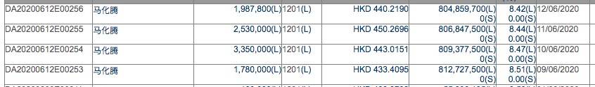 据港交所披露,腾讯董事会主席、首席执行官马化腾分别在6月9日至6月12日四个交易日内减持腾讯股票,其中6月9日以每股433.41港元的均价减持178万股,6月10日以每股443.02港元的均价减持335万股,6月11日以每股450.27港元的均价减持253万股,6月12日以每股440.22港元的均价减持198.78万股,合计减持964.78万股,共套现约42.70亿港元。