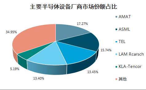 根据VLSI Research的数据显示,美国企业在PVD,CMP设备,检测设备和离子注入设备领域基本垄断了市场。从营收角度看,美国三大半导体设备提供商AMAT(应用材料公司),Lam Research(泛林),KLA(科磊)2019年的应用收入分别为134.68亿美元,95.49亿美元和46.65亿美元,约占全球总营收的35.9%及前15的43%,占有绝对优势。