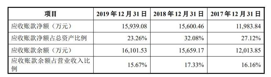 相比同行业公司的平均水平,依依股份应收账款在营业收入中所占比例较高。报告期内,行业平均值为10.73%、11.74%、11.5%,依依股份高出5个百分点以上。而在应收账款周转率上,依依股份则显著低于其在招股书中列示的行业均值11.26%、11.98%、11.46%,也在5个百分点左右。