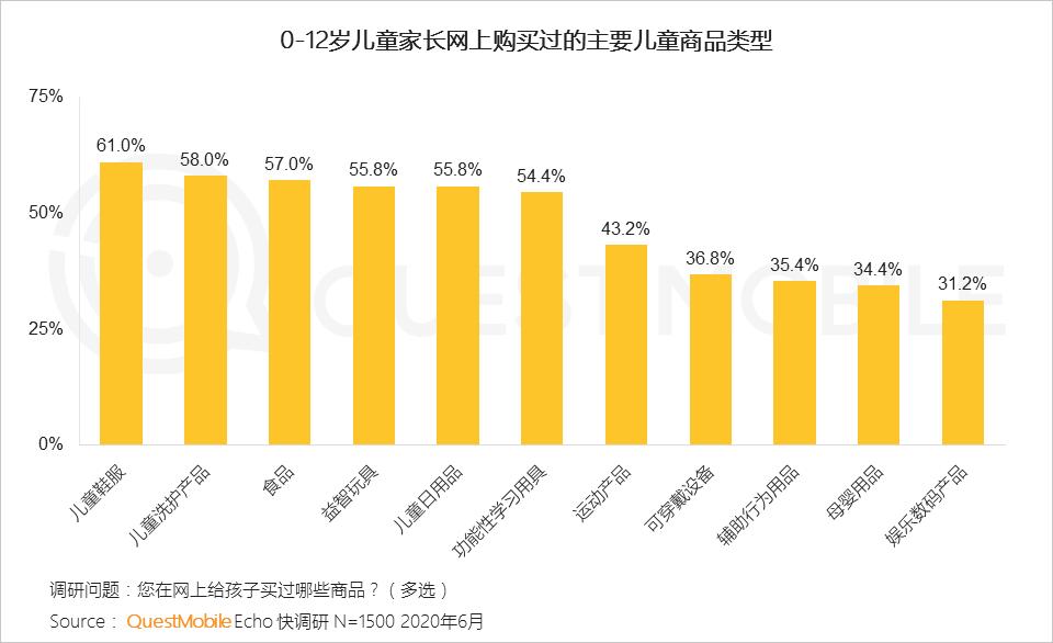 3.3 家长已经养成网购儿童用品的习惯,从基础的衣食用品,到教育益智用品、以及高科技的穿戴设备都有涉及