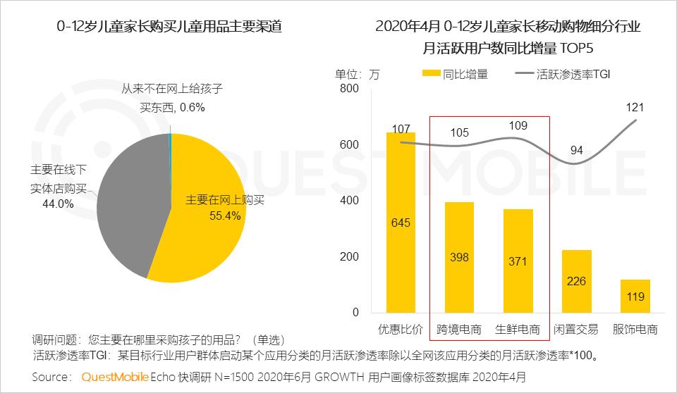 3.1 多数家长主要通过电商购买儿童用品,其消费观念也在不断升级,越来越多用户借助优惠比价、跨境电商、生鲜电商等应用,寻找高性价比、高品质的商品
