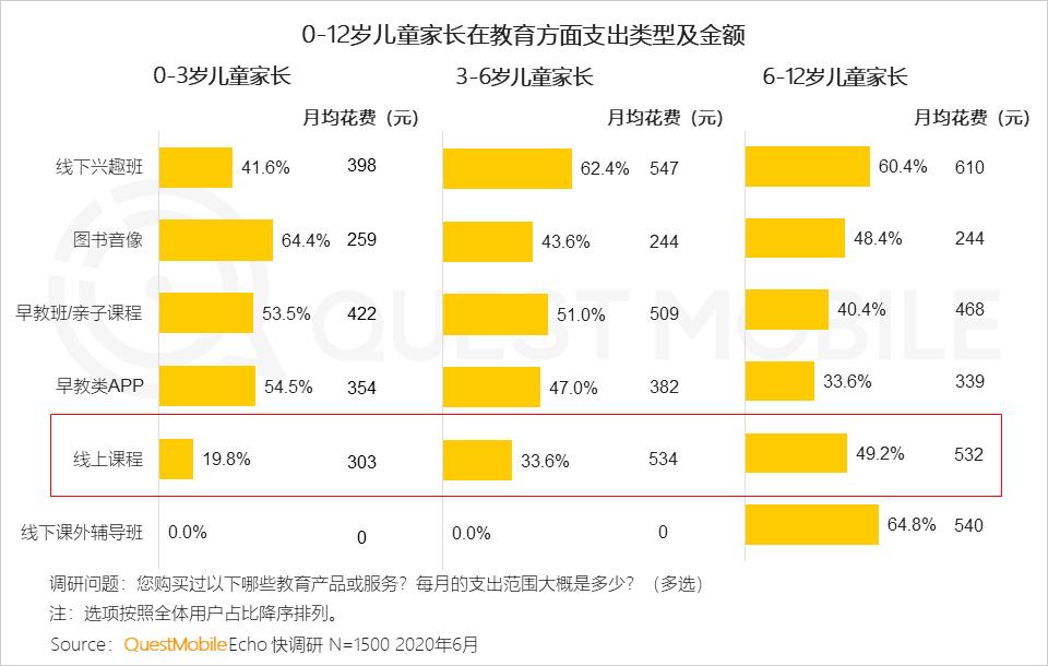 4.2 随着儿童年龄增长,家长用于儿童的教育支出逐渐向课外班、兴趣班倾斜,线上教育成为重要教育方式